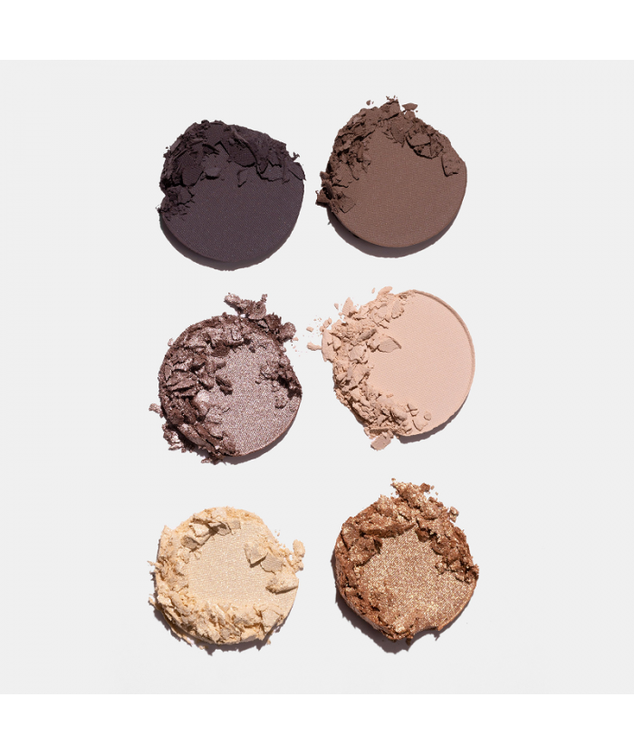 Три матовых и три перламутровых оттенка: состав палетки включает три матовых оттенка для создания глубоких и насыщенных цветов, а также три перламутровых оттенка, добавляющих макияжу блеск и яркость.